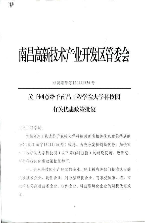 南昌高新技术产业开发区管委会关于同意给予bte365有关优惠政策批复