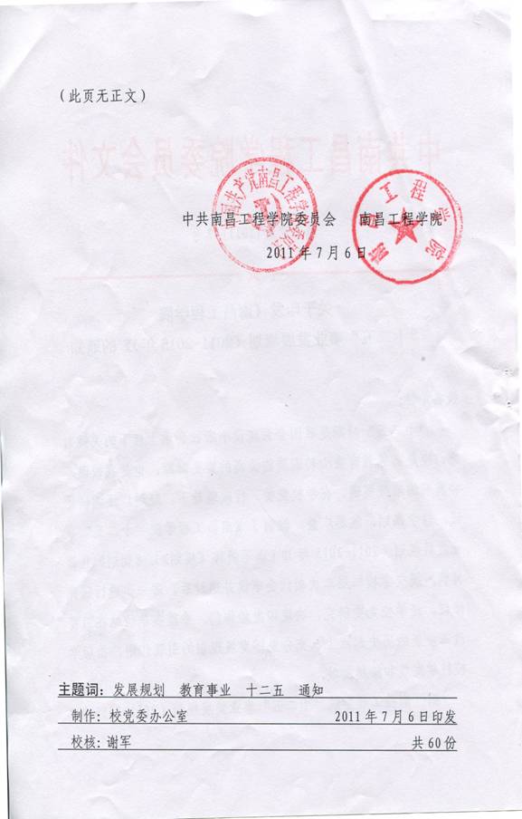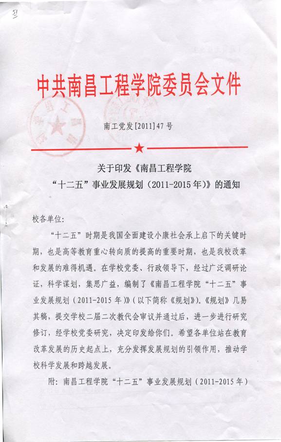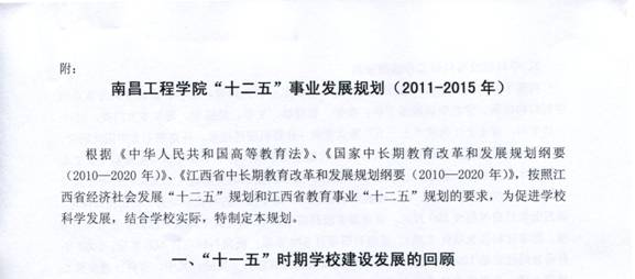 关于印发《南昌工程学院“十二五”事业发展规划(2011-2015年)》的通知