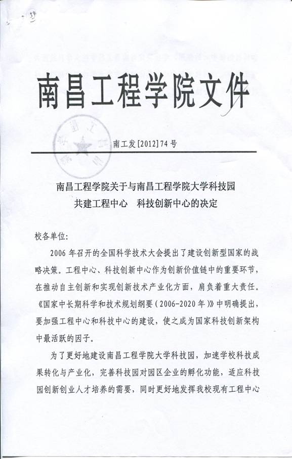 南昌工程学院关于与bte365共建工程中心 科技创新中心的决定
