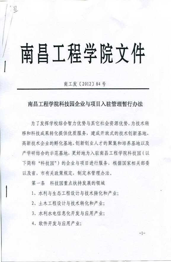 南昌工程学院科技园企业与项目入驻管理暂行办法