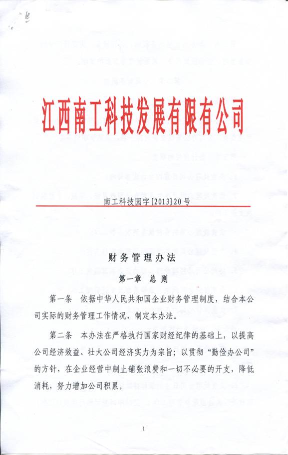 江西南工科技发展有限公司财务管理办法